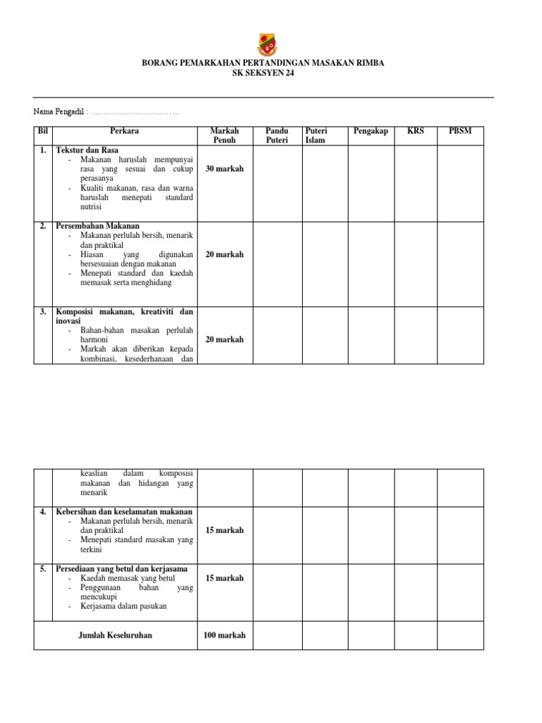 Borang Pemarkahan Pertandingan Masakan Rimba Pdf