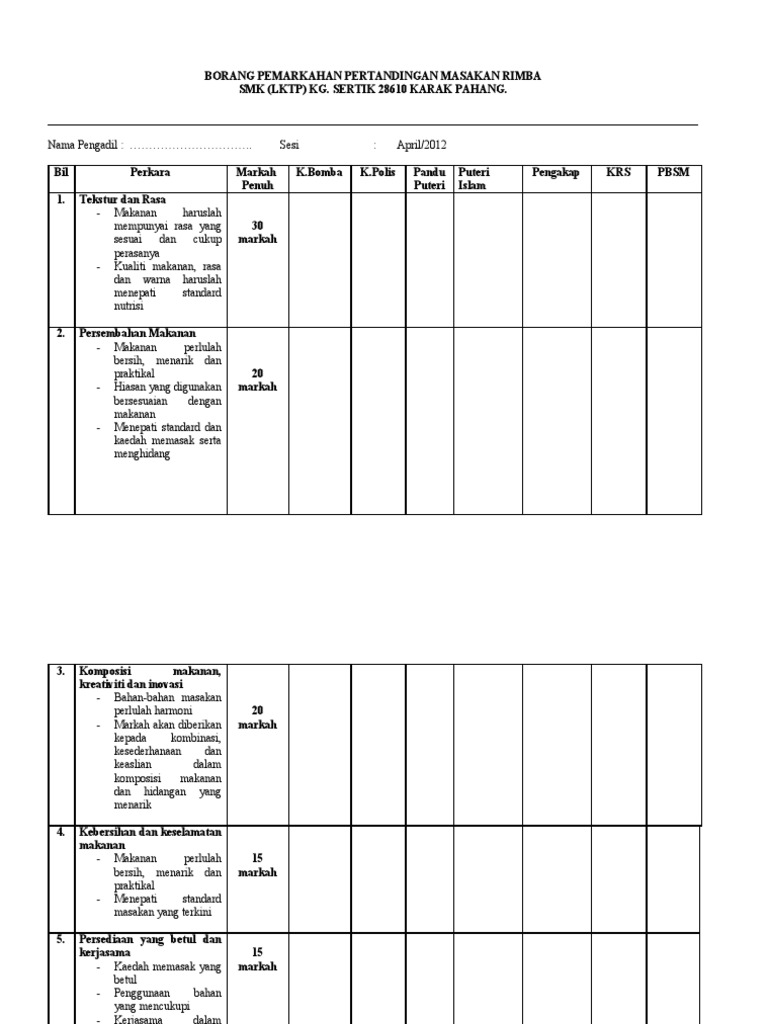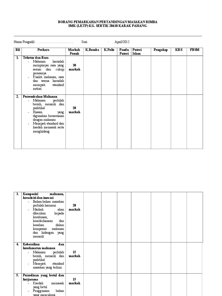 Borang Markah Masakan Rimba Landskap. Pemarkahan Pertandingan Mewarna Maklumat Pertandingan Inovasi P P Pdf Download Gratis A Pengerusi Panitia Bahasa Tamil Harus Mengisi Borang Penyertaan Peringkat Negeri Anam Handoko. 3 4 tahun.