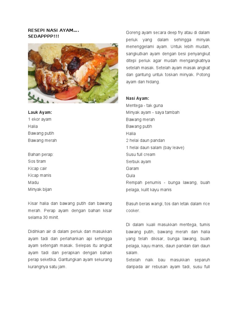 Bersihkan ayam toskan air dan lumurkan dgn 2 ulas bawang putih dan halia yg diketuk. 500 gram beras cuci bersih. Ebook-ebook tersebut meliputi Resep untuk penderita Hipertensi resep masakan tahu atau tempe ebook resep nasi goreng aneka kue resep ayam cokelat dan banyak resep-resep.